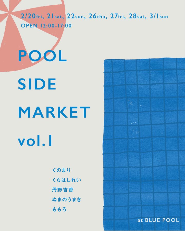 「POOL SIDE MARKET」 に参加させていただきます! 開催日時 会期① 2/20(金)・21(土)・22(日)・26(木)・27(金)・28(土)・3/1(日) 12-17:00まで。