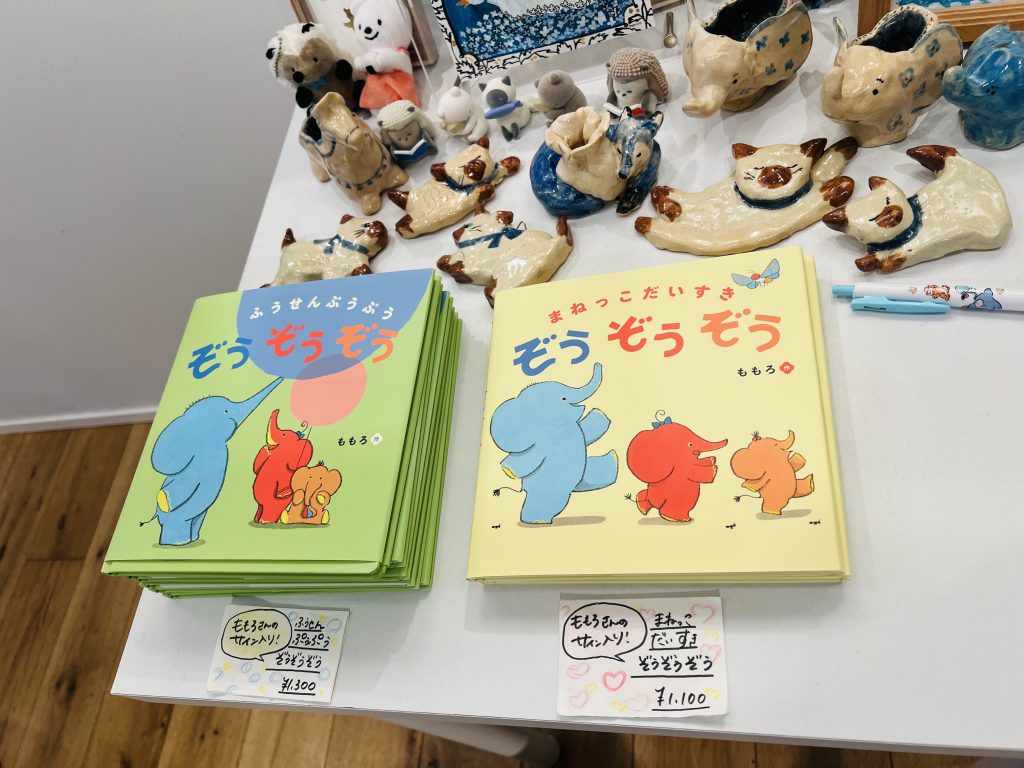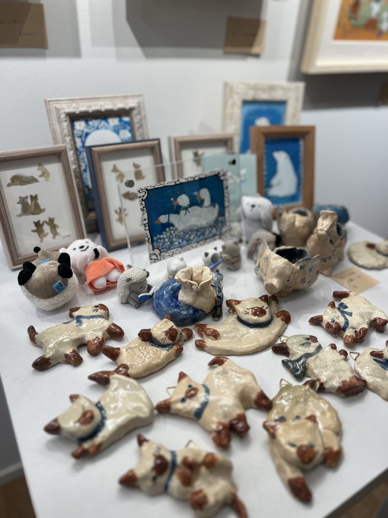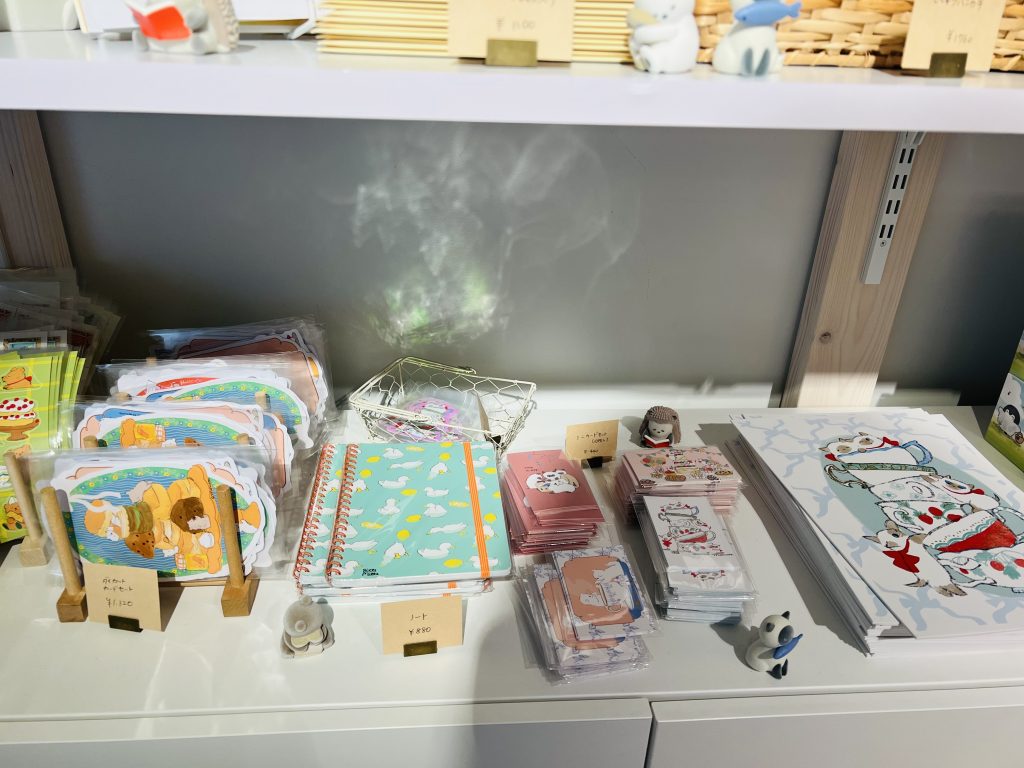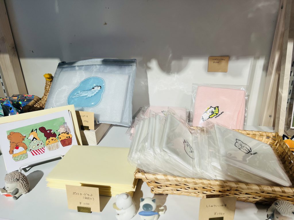 ミニ原画、刺繍ポーチ、ハンカチ、焼き物の販売も行います。その他新作カフェのイラスト集やステーショナリー類も新作作りましたので作品と共に楽しんでもらえたら嬉しいです。