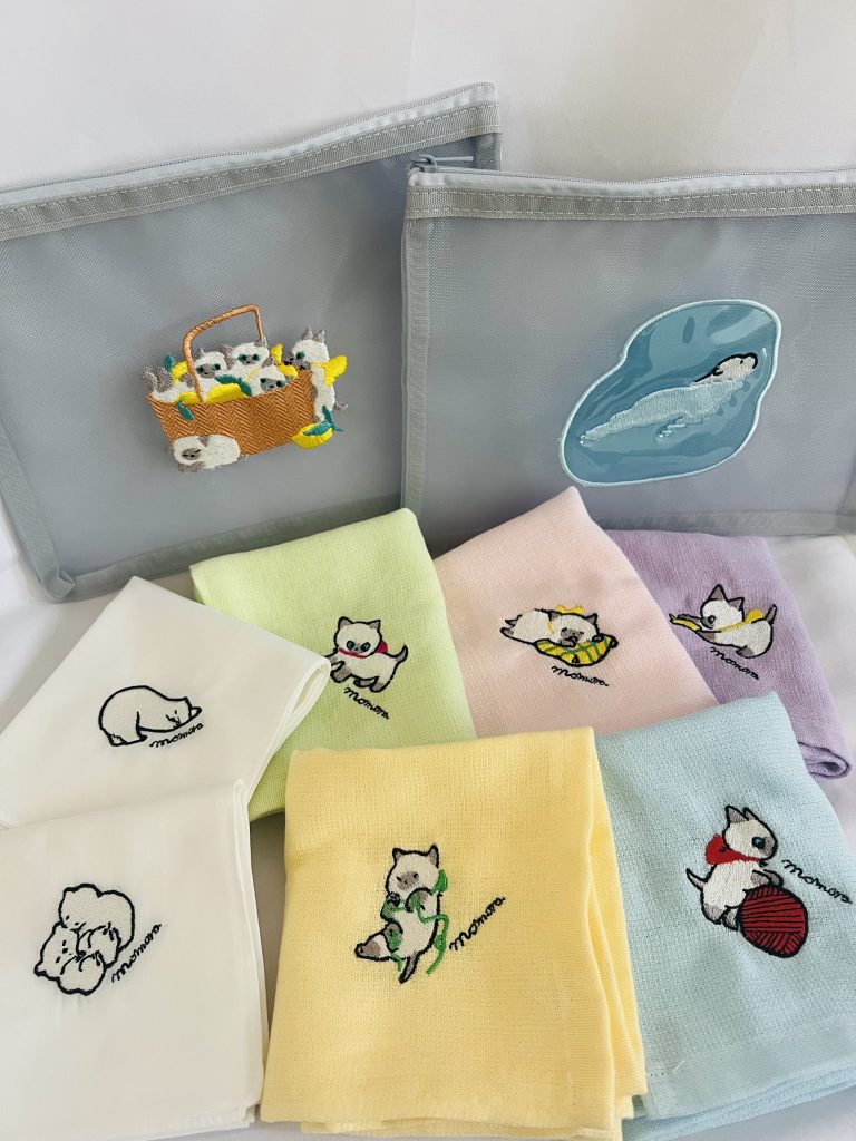 この度、@ShiroShio_info がやっている刺繍工房s-rayさんにてたくさんの刺繍グッズを作ってもらいました。 親身に色々相談に乗ってくれたりアイデアを出してもらってどれも素敵なものができて感動しています