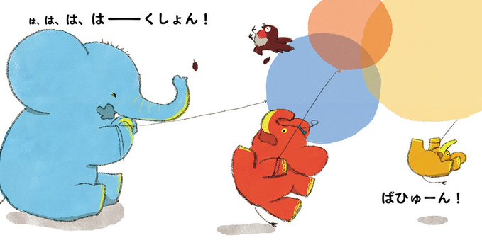 大好きな風船であそぼうとした、ぞうのきょうだい。
